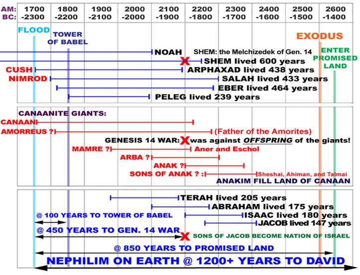 Some interesting things pop up toward the end of the 500-year titan time period. You see the Aztec/Myan calendar (3114BC), the death of Adam, then about 25 years after that is the end of the first-generation Nephilim. (3050BC) Enoch 10:10